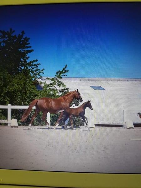 Zu Verkauf steht eine 2,5 jährige Fuchsstute, eine Zukunftshoffnung im Sport mit einer beeindruckenden außergewöhnlichen Ausstrahlung und besten Bewegungspotenzial. (war Championatsfohlen) Diese junge Stute präsentiert sich stets kopfklar, menschenbezogen und nervenstark. Sie ist neugierig, unerschrocken und zeigt sich sowohl im täglichen Umgang als auch auf der Weide von ihrer besten Seite. Schmiede u d verladefromm ist sie auch. Als vielversprechendes Sportpferd bringt sie bereits jetzt drei sehr gute GGA mit, die auf eine erfolgreiche Zukunft im Dressurparcour hoffen laesst. Sie befindet sich in der altersgerechte Entwicklung und ist noch roh. Mit ihrer auffälligen leuchtenden Fuchs Farbe und mit ihrem harmonischen Gebäude ist sie ein echter Hingucker. Sie ist gesund, frei von Unarten und stammt aus SpitzenBlutlinien. Wir suchen für diesen Rohdiamanten einen ambitionierten Kaeufer( Züchter oder Sport Reiter), der ihr Potenzial erkennt und sie mit Zeit, Geduld und Expertise weiter fördert.