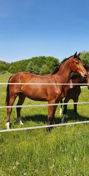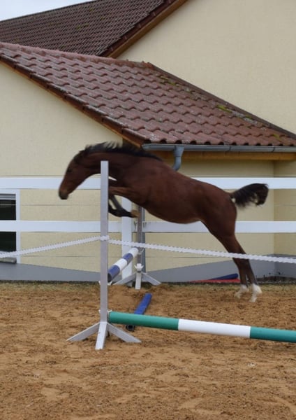 Zu verkaufen ist eine 3-jährige Stute von Meganus PS x Chacco Blue. Sie ist tragend von Conthalou. Die dritte Mutter ist die Vollschwester von Deister.