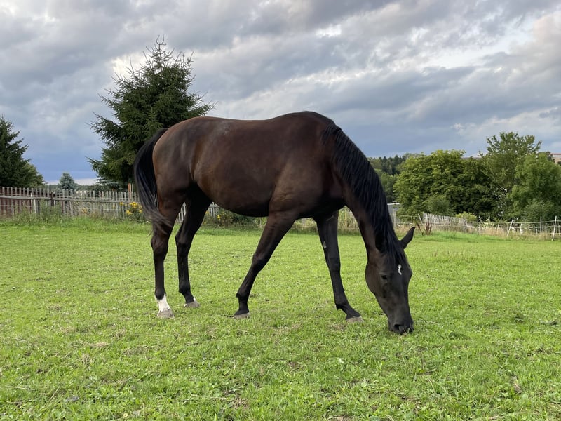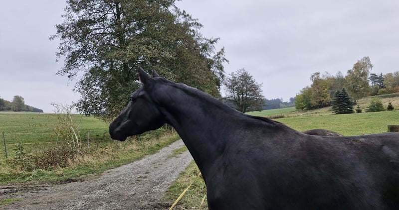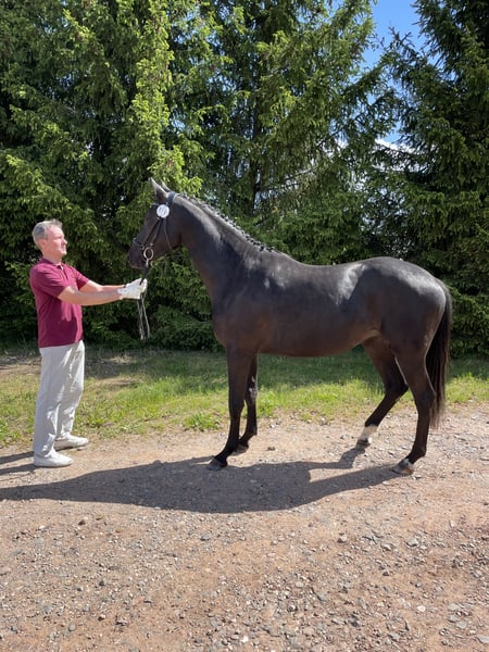 Verkaufe deutsches Sportpferd – Vielseitigkeitstalent gesucht! Zum Verkauf steht eine elegante und talentierte Stute, geboren im Jahr 2022. Die schicke Schwarzbraune überzeugt durch ihre beeindruckende Erscheinung und ihr vielseitiges Können. Mit einem Stockmaß von 168 cm bietet sie die perfekte Größe für ambitionierte Reiterinnen und Reiter, die auf der Suche nach einem zuverlässigen Partner für den Turniersport sind. Durch die Anpaarung mit dem Trakehnerhengst IVANHOE (2022 bester Trakehnerhengst der FN- Zuchtwerschätzung) an die springbetont gezogene und sportlich erfolgreiche Mutter, stehen ihnen auch züchterisch alle Türen offen. Ivanhoe’s Ulani ist bisher hauptsächlich in Bodenarbeit und an der Longe ausgebildet, ist dabei immer aufmerksam, stets bemüht alles richtig zu machen und zu gefallen. Mit der Ausbildung unter dem Sattel sind wir aufgrund des Alters der Stute am Anfang, heißt sie ist nur leicht angeritten. Somit kann der neue Sportpartner sofort mit der Ausbildung nach seinen individuellen Wünschen beginnen. Das Pferd ist gesund, gut erzogen und besitzt ein freundliches Wesen. Bei Interesse oder für weitere Informationen stehe ich gerne zur Verfügung. Ein Kennenlernen und Besichtigung sind nach Vereinbarung möglich. Ich freue mich auf Ihre Kontaktaufnahme!