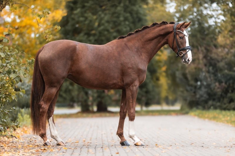 **Wir berechnen für das Probereiten eine Gebühr von 50€. Bei Kauf wird diese selbstverständlich angerechnet.** Zum Verkauf steht eine elegante und talentierte Dunkelfuchsstute, geboren im Jahr 2022. Neben ihren drei sehr guten Grundgangarten verfügt sie über eine beeindruckende Erscheinung, die sofort ins Auge fällt. Mit einem Stockmaß von 169 cm bietet sie die perfekte Größe für ambitionierte Reiterinnen und Reiter. Ihre Stärken liegen im Dressursport: sie zeigt viel Talent, Elastizität und eine angenehme Grundhaltung. Die Stute ist gerade angeritten, fein an den Reiter zu gewöhnen, und besitzt ein vielversprechendes Potenzial für den Turniersport oder den gehobenen Freizeitreitsport. Was sicherlich noch zu erwähnen ist, ist die absolute Unerschrockenheit dieses Pferdes. Sie ist gesund, regelmäßig geimpft und entwurmt, sowie gut im Umgang. Die Stute ist bereit für ihre nächsten Aufgaben und freut sich auf eine/n engagierte/n Reiter/in, der/die ihre Fähigkeiten weiter fördert. Sowohl für den Profi, als auch für den Amateur geeignet. Ein guter TÜV mit Hals und Rücken liegt vor. Bei Interesse, oder für weitere Informationen stehe ich gerne und ausschließlich unter 01738219886 zur Verfügung.