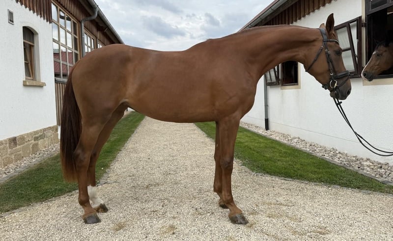 💎 Stute 💎 3 Jahre 💎 1,72 m 💎 Dressur | Nachwuchs für Zucht & Sport 💎 Preiskategorie 25.000€ - 30.000€ ⸻ Zum Verkauf steht eine außergewöhnlich interessante dreijährige Stute von Danciero x Bordeaux. Mit ihrem modernen sportlichen Typ, ihrer Größe von ca. 1,72 m, ihren überdurchschnittlichen Grundgangarten und ihrer natürlichen Rittigkeit ist sie sowohl für ambitionierte Amateure als auch für Profis eine echte Empfehlung. Genetisch ist sie hochinteressant: Danciero – aktuell einer der begehrtesten Hengste seiner Generation und Bordeaux, ein bewährter Vererber mit starker Rittigkeitsveranlagung. Damit ist die Stute züchterisch ebenso spannend wie sportlich. ⸻ Diese junge Stute überzeugt jeden Tag mit ihrem super lieben, extrem unkomplizierten und unerschrockenen Wesen. Sie ist: • sehr brav und zuverlässig im Umgang, • menschenbezogen, • unerschrocken, • einfach im Handling • und sozial absolut problemlos mit anderen Pferden. Unter dem Sattel zeigt sie sich leicht zu reiten, mit deutlich spürbarer Rittigkeit und einem tollen Arbeitseifer. Trotz ihres jungen Alters ist sie bereits sehr angenehm zu bedienen und macht es ihrem Reiter leicht. ⸻ Die Stute ist altersgemäß angeritten und kennt bereits: • Reiten in der Halle, • auf dem Platz, • Ausreiten ins Gelände. Sie wurde noch nicht auf Turnieren vorgestellt, hat aber alles, um im kommenden Jahr in eine erfolgreiche Saison zu starten. Sie ist aufgrund ihres Alters noch grün, aber zeigt sich hochmotiviert, klar im Kopf und stets bemüht, alles richtig zu machen. Ideal, um sie jetzt über den Winter in Ruhe weiter auszubilden. ⸻ Bei der Ankaufsuntersuchung wurde ein Chip gefunden, der operativ problemlos entfernt werden kann. Aufgrund dieses Befunds wird sie deutlich unter Wert abgegeben. Der Chip beeinträchtigt sie momentan nicht im Reiten und ist chirurgisch gut behandelbar. ⸻ Wir suchen ein liebevolles, langfristiges Zuhause für dieses Nachwuchstalent. Jungpferde-erfahrene Hände sind wünschenswert, aber kein Muss – durch ihr unkompliziertes Wesen ist sie auch für weniger erfahrene Reiter sehr gut händelbar. Eine sportliche Förderung würde uns freuen. ⸻ Diese Stute ist ein Top-Nachwuchspferd mit hervorragendem Pedigree, starken Grundgangarten, bester Rittigkeit und einem tollen Charakter. Zucht & Sport – beides absolut denkbar! Eine seltene Gelegenheit, ein so gut gezogenes und talentiertes Pferd zu einem deutlich reduzierten Preis zu erwerben.