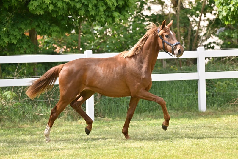 Mit Va Bella B präsentiert sich eine äußerst typstarke und bewegungsstarke zweijährige Stute mit besonderer Abstammung. Vater Va Bene ist aktuell in aller Munde aufgrund seiner herausragenden Fohlenjahrgänge und auch seinen eigenen Erfolgen in der Dressur S***. Mutter Staatsprämienstute Florencia B war Freilaufchampionesse, SLP-Reservesiegerin und gewann Bronze beim Verbandschampionat der 3jährigen Reitpferde. Sie war nominiert zum Bundeschampionat. Sie hat zwei gekörte Brüder und weitere Schwestern wurden ebenfalls mit Staatsprämie ausgestattet. Halbschwester StPr Raffaela B war SLP-Siegerin, Dressurpferde M erfolgreich und wurde Verbandschampionesse, ihr Sohn DSP Fürstano B war in 2022 DSP-Youngster Dressurchampion und ist aktuell Grand Prix- siegreich. Großmutter StPr Patra B legte ihre SLP mit 8,52 ab und war Dressurpferde L erfolgreich. Ihr Bruder Ravel v. Rubinstern Noir war S-Dressur erfolgreich. Aus dem Mutterstamm mehrere gekörte Hengste und S-Dressur erfolgreiche Pferde. VIDEO kann auf Anfrage per WhatsApp verschickt werden.