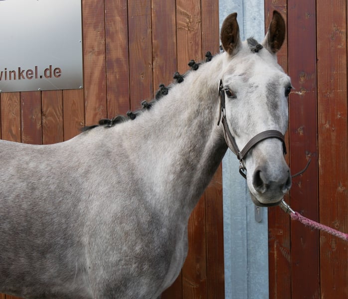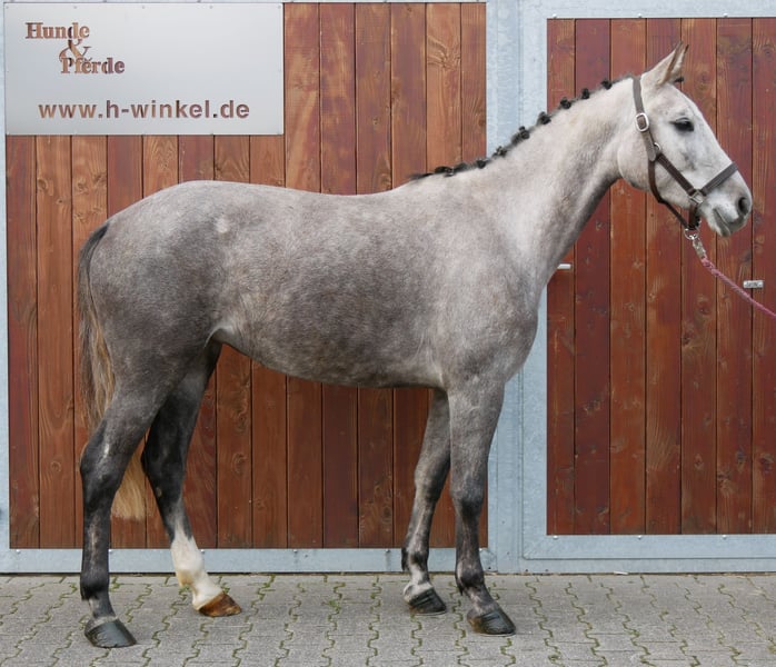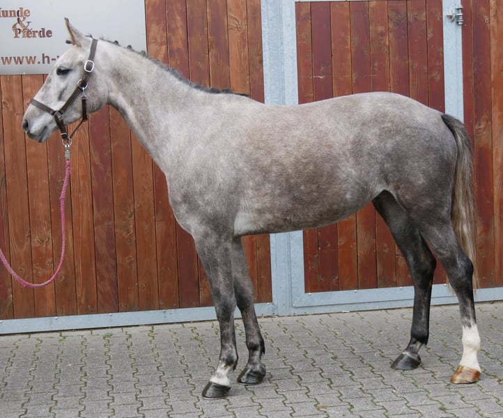 Name: Claudia Alter: geb. 07.07.2021 Geschlecht: Stute Stockmaß: 150 cm Rasse: Dt.Sportpferd Abstammung: Cayton von Calido x Cascadello 1 von Casall Ausbildungsstand: longiert Doppelt veranlagte Stute mit sehr guten GGA sowie toller Springmanier. Alles weitere unter der Nummer 0176 62495567