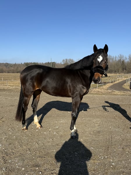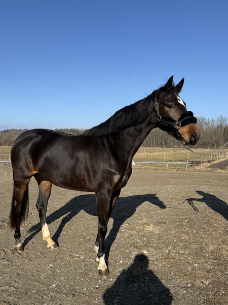 Zu Verkauf steht eine selbstbezogene 4 jährige Stute von Liamant . Super brav beim reiten noch nicht viel Erfahrung macht schon ein Kleinen Sprung . Super Allrounder Pferd schön zu reiten . 158cm groß .