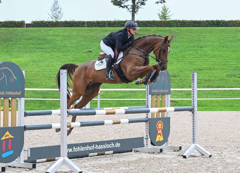 Aquí está la colección y el registro en línea: https://auktion.pzvbw.de/auctions IVA 0 % La agilidad, la precaución y un gran corazón luchador son las características distintivas de esta joven yegua. Al igual que su abuelo Baloubet, aborda el recorrido con ambición y deportividad. En sus primeras competiciones, ha conseguido varios premios, logrando rondas sin faltas de manera constante.