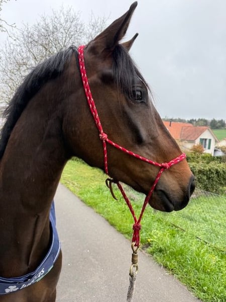 Zum Verkauf steht eine elegante vierjährige Jungstute mit einem bezaubernden Charakter. Sie wurde 2025 schonend angeritten, ist seither im Vollberitt und überzeugt bereits durch ihre unglaublich zuverlässige und ausgeglichene Art. Felicity ist ein perfektes Damen- oder Familienpferd, ist nicht allzu gross (ca. 163cm), und hat die ideale Mischung von Temperament und Gehorsam. Für’s Dressurviereck bringt sie nebst ihrer interessanten Abstammung drei gute Grundgangarten mit, ist immer motiviert und sowohl am Schenkel wie auch in der Hand sehr fein und leichtrittig. Sie ist bereit für ihre ersten Turniere! Felicity ist eine neugierige und aufgeschlossene Jungstute. Sie schätzt Aufmerksamkeit, ist kinderlieb und verschmust und und liebt es, ausgiebig geputzt zu werden. Sie möchte aber wie jedes junge Pferd auch gearbeitet und weiter gefördert werden. Dank ihrer selbstsicheren und vertrauensvollen Art geht sie bereits allein ins Gelände. Freispringen bis 1m und Cavaletti- oder Stangenarbeit unter dem Sattel kennt sie schon sehr gut und macht ihr Freude. Das Verladen und Transportieren macht ihr nichts aus. Sie ist noch barhuf. Felicity sucht einen neuen Besitzer, dem sie ihr Herz schenken kann und viel Zeit und Liebe zurückerhält. Ihre Ausbildung steckt aufgrund des Alters erst in den Kinderschuhen, doch bleibt sie bei regelmässigem Training bestimmt ein Pferd, das jeden Tag Freude macht! Felicity wird an keinen Händler verkauft.