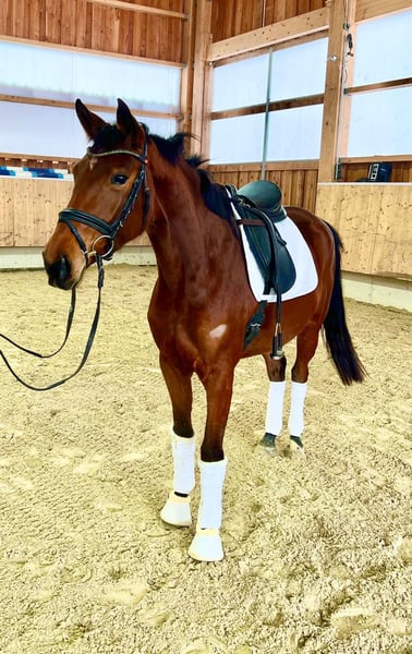 Stute springbetont -Nachwuchspferd aus 2022 Diese motivierte springbetonte Stute besticht durch ihre Arbeitseinstellung und ihre unkomplizierte Art. Callina ist altersgemäß schonend und gut angeritten, fein in der Hand und überzeugt unterm Reiter bereits bei kleinen Sprüngen. Sie meisterte die ersten Sprünge mit viel Übersicht und Go. Sie hat keinerlei Unarten wie Buckeln, Steigen oder Schlagen und ist stets gut aufgelegt und lernwillig. Geeignet ist sie für den Springsport, Gelände oder als unkomplizierter Freizeitpartner. Mehr. Sie ist äußerst menschenbezogen, schmiede- und verladefromm. Ideal für Reiter, die ein talentiertes Pferd suchen, ohne Unarten, das sowohl im Training als auch auf dem Turnierplatz glänzt Wichtige Hinweise: • gute Röntgenbilder ohne Risikobefund inkl. Rücken liegen vor. Ein Probereiten ist jederzeit möglich, eine Reithalle ist vorhanden. Bei Interesse oder für weitere Informationen stehe ich gerne zur Verfügung: Telefon: 08531 3102826 oder 0171 6087030 -