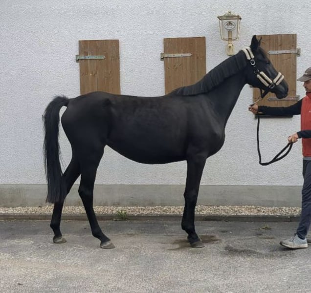 Offriamo una bellissima fattrice di colore nero laccato, di nostra allevamento. È un cavallo fine e ben proporzionato. Nel maneggio è un vero tesoro: è abituata al capestro, si lascia toccare ovunque, dà i piedi senza problemi, è tranquilla dal maniscalco e non è mai stata malata. Ha 3 ottimi GGA e quindi ci si può aspettare una grande carriera nel quadrato. Attualmente è tenuta 24 ore su 24, 7 giorni su 7, al pascolo in un gruppo misto di fattrici. In inverno è stata con il gruppo in un ricovero all'aperto con accesso libero al pascolo 24 ore su 24. Per ulteriori informazioni contattateci volentieri via WhatsApp o telefonicamente!