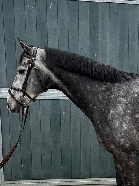4-year-old ridden mare, who is very well-behaved and already makes small jumps under saddle. The free jumping, as well as the pedigree, gives reason to hope for more. Videos and additional photos can be requested. The vet check is available and was flawless.