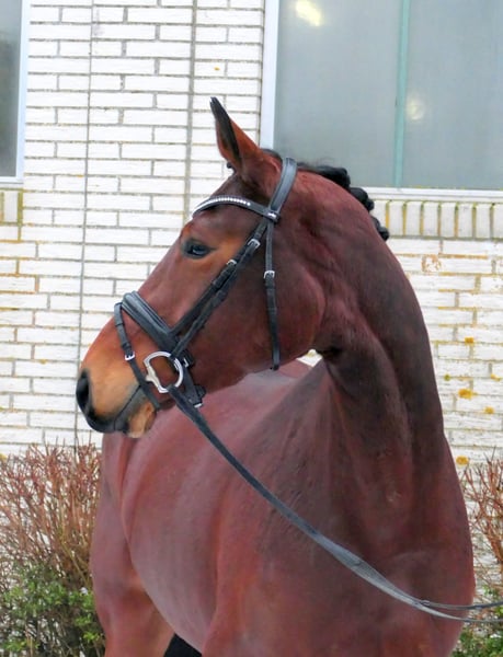 Dominga hat das, was alle suchen. Typ, stabiles Fundament und korrektes Exterieur, super brav, einfach zu reiten bei angenehmer Vorwärtstendenz. Die junge Stute wurde sorgfältig auf ihre zukünftigen Aufgaben vorbereitet. Sie legte nach kurzem Anreiten letztes Jahr eine gute Stutenleistungsprüfung ab und wurde mit der Staatsprämie ausgezeichnet. Danach konnte sie in Ruhe auf der Wiese weiter wachsen und genießt nun seit drei Monaten eine vielseitige Grundausbildung. Sie ist gut geritten, aufmerksam und besitzt ein exzellentes Hinterbein. Der Schritt ist herausragend, großzügig, unerschütterlich im Takt und stets durch den Körper vorgetragen. Der Trab überzeugt durch Aktivität und Gleichmaß, die Galoppade beeindruckt durch ein natürliches Bergauf. Kleine Sprünge unter dem Reiter absolviert sie mit viel Freude. Durch ihre aufgeschlossene Art, ihre natürliche Rittigkeit und ihre Lernbereitschaft ist sie bestens als toller Partner für Sport und/oder Freizeit geeignet. Sie ist unkompliziert und lieb im Umgang, kennt die Haltung sowohl im Offenstall als auch in der Box (Selbstverständlich mit viel Freilauf), ist verträglich in der Herde, brav beim Schmied und beim Verladen. Derzeit ist sie barfuß unterwegs. Zusätzlich verfügt sie über sehr gute Röntgenbilder. Ihre Abstammung macht sie auch als Zuchtstute interessant. Vater Don Nobless war ebenso selber hocherfolgreich im Grand Prix Sport wie der Muttervater Foundation. Die Großmutter lieferte gleich mehrere sporterfolgreiche Nachkommen und war selber Vollschwester zum Grand Prix Star Weinrausch. Dominga befindet sich noch in Züchterhand und kann jederzeit besichtigt werden.