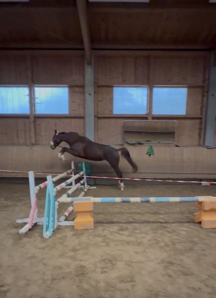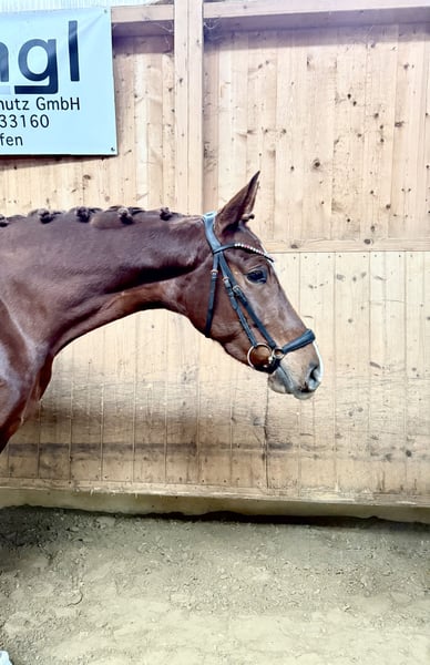 Zum Verkauf steht eine bildschöne Dressurstute, geboren 2022, in der auffälligen Farbe Dunkelfuchs mit vier weißen Füßen. Sie überzeugt durch ihren edlen Auftritt, klare Linien und eine sehr harmonische Gesamterscheinung. Diese junge Stute stammt ab von Bonderas (Bonds – Benicio – Bellissimo M), einem Vererber, der für Rittigkeit, Ausdruck und moderne Dressurpferde bekannt ist. Mütterlicherseits führt sie bestes Blut über Belanta (Belantis – Benetton Dream – Bretano II), eine der erfolgreichsten Dressurvererberlinien der letzten Jahre. Damit vereint sie Leistungsbereitschaft, Bewegungsqualität und einen ausgezeichneten Charakter. Die Stute zeigt sich altersgemäß entwickelt, mit drei guten Grundgangarten, viel Takt und natürlicher Balance. Besonders hervorzuheben sind ihre aktive Hinterhand und die bergauf gerichtete Silhouette. Sie ist aufmerksam, menschenbezogen und unkompliziert im Umgang – ideale Voraussetzungen für eine erfolgreiche Zukunft im Dressursport. Sie kennt Halle, Reitplatz, erste Stangenarbeit unter dem Reiter, Freispringen und kleine Runden im Gelände. Sitzbequem und fein an den Hilfen macht diese Stute jeden Tag aufs Neue Spaß. Dank ihrer hochwertigen Abstammung und ihres vielversprechenden Bewegungspotenzials ist sie sowohl als Sportpartner für ambitionierte Reiter als auch als interessante Zuchtstute bestens geeignet. Ein Pferd für Liebhaber moderner Dressurpferde mit Perspektive. Das Pferd steht in 82256 Fürstenfeldbruck und kann jederzeit Probegeritten werden. Barbie ist vorne beschlagen, entwurmt und durchgeimpft.