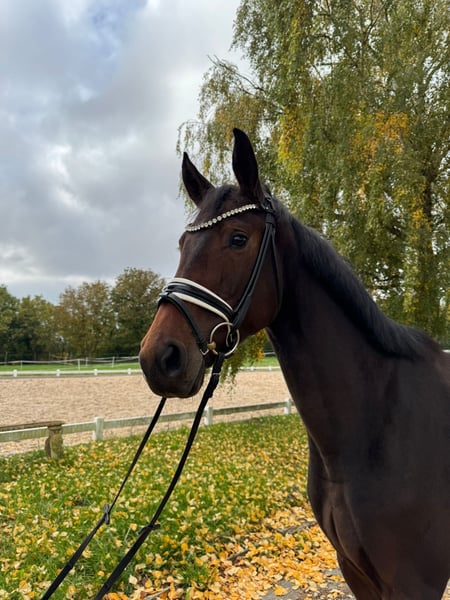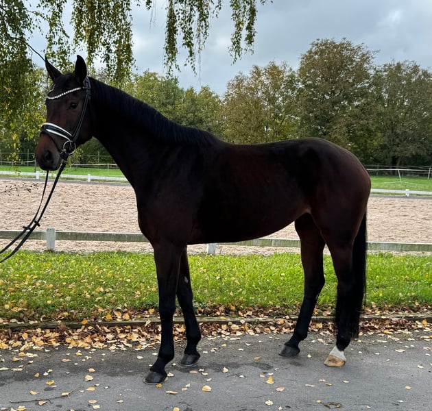 This 4-year-old mare by So Perfect x Lord Leopold comes directly from the breeder. She has been started late and is rather a sensitive and spirited horse. She is familiar with pasture, paddock, and lunging. She is good with the farrier and loading. A good vet check is available. She can be tried out at any time in 97285 Röttingen. Please contact by phone at 01797002982 or 015117238135.