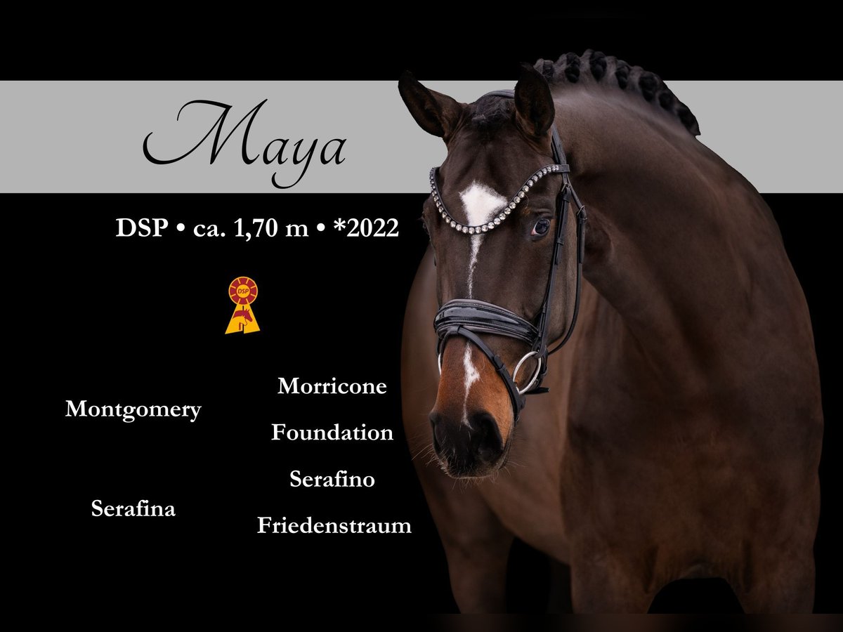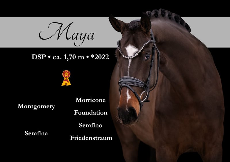 Liebe Interessenten, Für Terminvereinbarungen Probereiten senden Sie mir bitte eine WhatsApp. Für weitere Fragen bin ich tagsüber per WhatsApp erreichbar, telefonisch erreichen Sie mich am Besten zwischen 16 und 19 Uhr. Ich freue mich auf eine Kontaktaufnahme www.angelina-devittorio.de ⭐️Maya⭐️ Alter: 4 jahre (2022) Größe: ca 1,70 m Abstammung: Montgomery x Serafino Ausbildungsstand: Dressurpferde A Niveau AKU: Gute Röntgenbilder vorhanden Zum Verkauf steht eine bildschöne Tochter des Montgomery aus einer Serafino Mutter mit drei hervorragenden Grundgangarten. Sie verfügt über eine hervorragende Galoppade mit viel Versammlungsbereitschaft, ihre sehr gute Trabmechanik mit sehr aktivem Hinterbein und ihr taktsicherer Schritt mit sehr gutem Übertritt. Sie ist ein äußerst angenehmes, unkompliziertes Pferd, sehr lieb im Umgang und stets menschenbezogen. Sie ist direkt vom Aufzüchter und ist auf sicherem Dressurpferde A Niveau und ist direkt startklar in dieser Klasse.. Super kopfklares Nachwuchspferd mit bester Qualität und hervorragender Perspektive für den höheren Dressursport. Absolut amateurtauglich , für jeden Amateur ab solidem A-Niveau geeignet, natürlich ist gewisse Jungpferde-Erfahrung Voraussetzung. Sie hat gute Röntgenbildern und hat keinerlei Vorerkrankungen. Eine super schicke Stute mit besten Anlagen, hervorragenden Grundgangarten und großartiger Perspektive für die Zukunft. auch für jungpferdeerfahrene Jugendliche bestens geeignet perspektivisch als zukünftiges Juniorenpferd. ⚜️Tel: 0171-3438949 ⚜️a.devittorio@web.de ⚜️https://www.ehorses.de/angelinadevittorio Facebook und Instagram Angelina De Vittorio