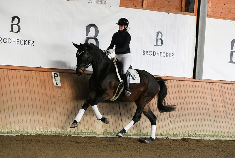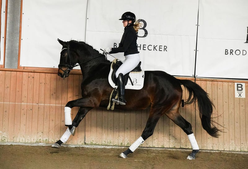 BURGHOF EASTER SALES vom 30.03. bis 06.04.2026 In der Kollektion: 35 Dressur-, Spring- und Freizeitpferde Alle Infos unter: https://brodhecker-burghof.de/burghof-easter-sales-2026/ Die bildhübsche DSP-Stute Fleur d’Amour überzeugt mit drei außergewöhnlichen Grundgangarten, einer tollen Rittigkeit und dem gewünschten Go. Durch ihren enormen Ehrgeiz und ihre hervorragende Arbeitsmoral ist der Weg in den gehobenen Dressursport bei entsprechender Förderung vorgezeichnet. Fleur d’Amour stammt aus eigener Zucht. Ihr Vater Fair Deal war Seriensieger in Jungpferdeprüfungen und Moritzburger Jungpferdechampion. Er führt das begehrte Blut des Elitehengstes Franklin – seines Zeichens Körungssieger und später erfolgreich bis Grand Prix. Mutter Denicia ist aktuell siegreich in Dressurpferdeprüfungen der Kl. L. Muttervater DSP De Sandro ist 4-facher DSP-Champion und erfolgreich in der Schweren Klasse. Bei Interesse an unseren Verkaufspferden, kontaktieren Sie uns gerne telefonisch oder per WhatsApp: Springpferde - Tel. (+49)159/06026914 (Johannes Brodhecker) Dressurpferde - Tel. (+49)172/8733686 (Volker Brodhecker)