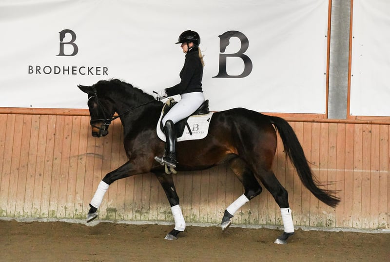 BURGHOF EASTER SALES vom 30.03. bis 06.04.2026 In der Kollektion: 35 Dressur-, Spring- und Freizeitpferde Alle Infos unter: https://brodhecker-burghof.de/burghof-easter-sales-2026/ Die bildhübsche DSP-Stute Fleur d’Amour überzeugt mit drei außergewöhnlichen Grundgangarten, einer tollen Rittigkeit und dem gewünschten Go. Durch ihren enormen Ehrgeiz und ihre hervorragende Arbeitsmoral ist der Weg in den gehobenen Dressursport bei entsprechender Förderung vorgezeichnet. Fleur d’Amour stammt aus eigener Zucht. Ihr Vater Fair Deal war Seriensieger in Jungpferdeprüfungen und Moritzburger Jungpferdechampion. Er führt das begehrte Blut des Elitehengstes Franklin – seines Zeichens Körungssieger und später erfolgreich bis Grand Prix. Mutter Denicia ist aktuell siegreich in Dressurpferdeprüfungen der Kl. L. Muttervater DSP De Sandro ist 4-facher DSP-Champion und erfolgreich in der Schweren Klasse. Bei Interesse an unseren Verkaufspferden, kontaktieren Sie uns gerne telefonisch oder per WhatsApp: Springpferde - Tel. (+49)159/06026914 (Johannes Brodhecker) Dressurpferde - Tel. (+49)172/8733686 (Volker Brodhecker)