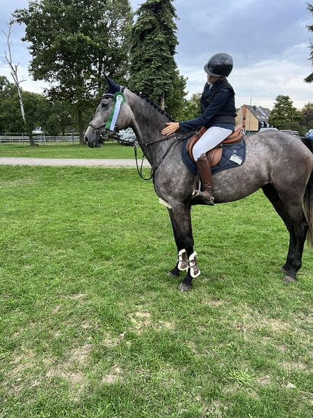 A talented and promising 4-year-old mare is available for sale. She is easy to ride for a child and an amateur rider. Ballerina enjoys daily training and is also a reliable partner in the field. This mare is very straightforward over jumps and is ideal for ambitious riders looking for a dependable partner in competitive sport. Her friendly nature and willingness to learn make her a pleasant companion both in training and in handling. She is healthy, well-mannered, and has already gained some experience in competition. P.S.: Ballerina is currently competing with my 13-year-old daughter in 85 cm classes. Please feel free to contact me if you have any further questions.