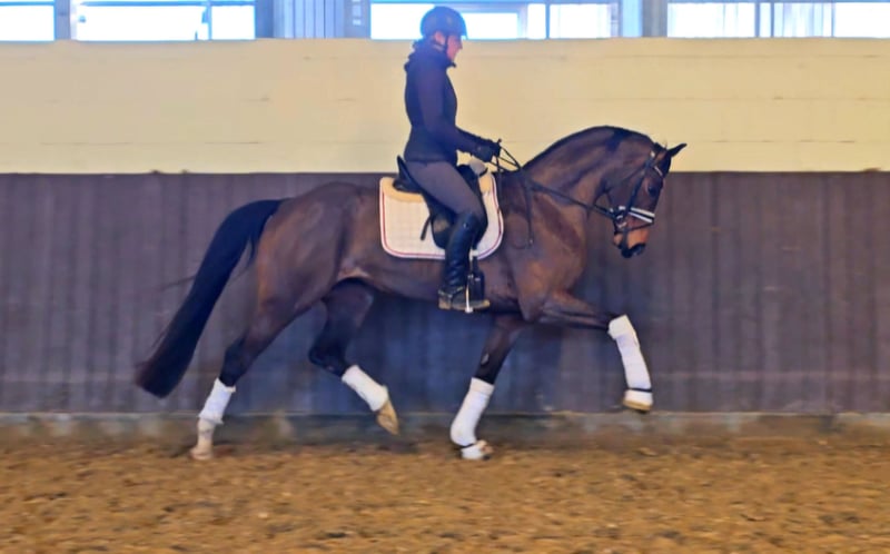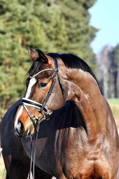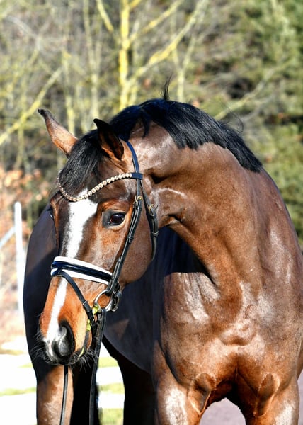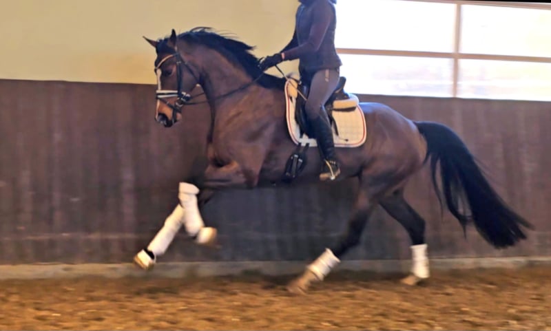This stunning, long-legged daughter of Fürst Samarant is impressive in every aspect! Excellent basic gaits with a powerful hind leg, a great work ethic combined with plenty of spirit and drive, and expressive presence define "First Choice." Due to time constraints, she was only started under saddle in autumn 2025, so the mare is still a bit green, but her attitude towards work suggests she will catch up quickly — a top opportunity for an aspiring trainer! A recent TÜV from 2025 is available. Act fast, as this mare is developing into a true championess!
