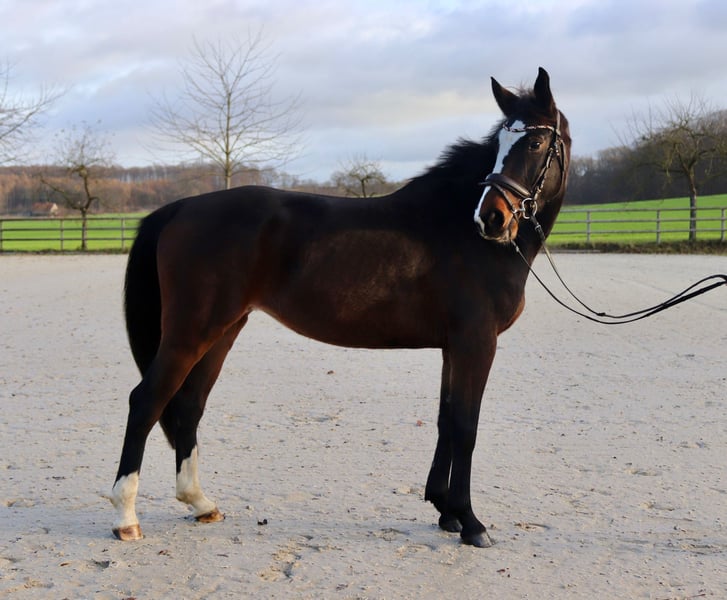 Wij bieden onze kleine merrie Zauberfee te koop aan. Ze is zeer rustig in omgang en beweegt zich zeker in alle drie de basisgangen. Daarnaast springt ze geweldig tijdens vrijspringen en heeft ze al een kleine parcours onder het zadel gedaan. Ze is altijd gemotiveerd en staat open voor nieuwe dingen leren. Zelfs op dagen dat ze vrij heeft, kun je zonder problemen de volgende dag weer veilig in het zadel stappen. Ze gaat graag in het terrein en is vertrouwd met trekkers, honden en kinderen. Bovendien is ze smid- en transporteerbaar. Overdag staat ze op een klein weiland met andere merries, is sociaal ingesteld en heeft een lagere rang, ’s nachts staat ze in een box. Vanwege haar leeftijd is ze geen puur beginnerspaard en wordt ze verkocht vanwege een vermindering van de kudde.