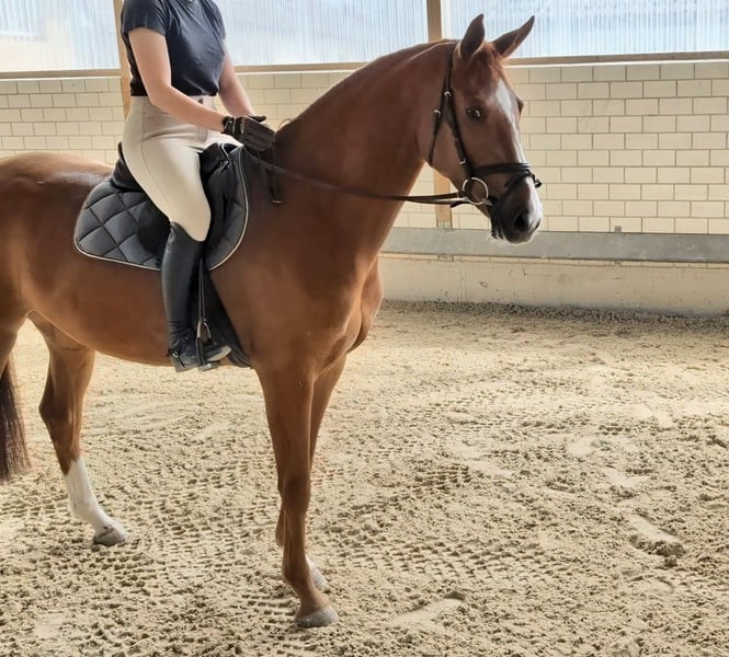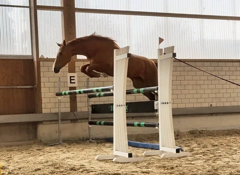 Todschickes, typvolles Mädchenpferd mit Bilderbuchtechnik für die Zukunft! Diese 5 jährige hübsche und kompakte Dame verfügt über eine gute Grundrittigkeit, sowie drei gleichmäßig gute und ausbalancierte Gangarten. Besonders hervorzuheben ist dabei ihr praktischer Galopp, der das Parcoursreiten einfach macht. Sie zeigt sich stets motiviert und verfügt über einen gesunden Ehrgeiz. Am Sprung präsentiert sie sich mit einer super Technik, schnellen Reflexen, guter Vorsicht, sehr viel Mut und außergewöhnlicher Einstellung, sowie gutem Vermögen. Sie springt bereits einen kleinen Parcours unter dem Reiter und ist zügig einsatzfähig in Gewöhnungsprüfung und Springpferde A. In ihrem Pedigree finden sich viele bewährte Vererber wieder: Vater Diro stammt ab von Topvererber Diamant de Semilly x Sandro und weißt eine beachtliche Eigenleistung vor. Er konnte sich nicht nur 6 jährig für das Bundeschampionat qualifizieren, sondern bereits 7 jährig 1,40m Erfolge und in 2025 im Alter von 8 Jahren zahlreiche Platzierungen in S** und S*** mit Calvin Böckmann im Sattel sammeln. Muttervater Comte v. Contendro I ist ebenfalls selbst in schweren Springen platziert, Großmuttervater Gloucester führte zu seiner Zeit mehrere Jahre die westfählische Gewinnsummenstatistik an und bringt das Blut der bedeutensten deutschen Veredler mit.