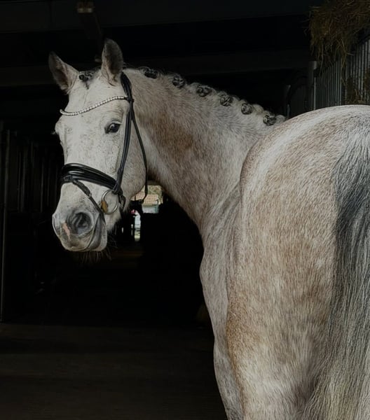 Verkaufe deutsches Sportpferd – elegante Apfelschimmel-Stute Zum Verkauf steht eine wunderschöne deutsche Sportpferd-Stute, geboren im Jahr 2021. Mit ihrem hübschen Gesicht zieht sie alle Blicke auf sich. Sie verfügt über ein Stockmaß von 167 cm und ist somit ideal für ambitionierte Reiterinnen und Reiter, die ein sportliches und elegantes Pferd suchen. Sie ist talentiert im Springen und zeigt bereits viel Potenzial in diesem Bereich. Die Stute ist freundlich, lernwillig und schonend ausgebildet, was sie zu einem vielversprechenden Partner für den Turniersport macht. Sie ist sehr anständig im Umgang und leicht zu reiten. Kleine Hüpfer über ein cavaletti machen ihr riesig Spaß. Im Freispringen entfaltet sie sich super und man kann erahnen was in ihr steckt. Sie stammt direkt vom Züchter und wird im Auftrag verkauft. Sie wurde regelmäßig entwurmt und dem Schmied vorgestellt. Bei Interesse oder weiteren Fragen stehe ich gerne zur Verfügung. Ein Besichtigungstermin ist nach Vereinbarung möglich. Bitte rufen Sie nicht anonym an, da dann kein Rückruf gewährleistet werden kann.