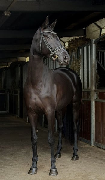 German sport horse mare for sale – elegant dark bay mare For sale is an impressive German sport horse mare, born in 2021. With her appealing basic gaits and an impressive shoulder height of 168 cm, she is truly eye-catching. This talented mare is ideally suited for dressage and impresses with her elegant appearance and friendly temperament. She has been gently backed and trained, showing great potential for the grand dressage arena. She comes directly from the breeder, has been regularly dewormed, and has been introduced to the farrier. X-rays are available, including views of the neck and back, and can be provided for inspection. If you are interested or have further questions, I am happy to assist you. A personal meeting is always possible. Please do not call anonymously, as this will prevent a callback.