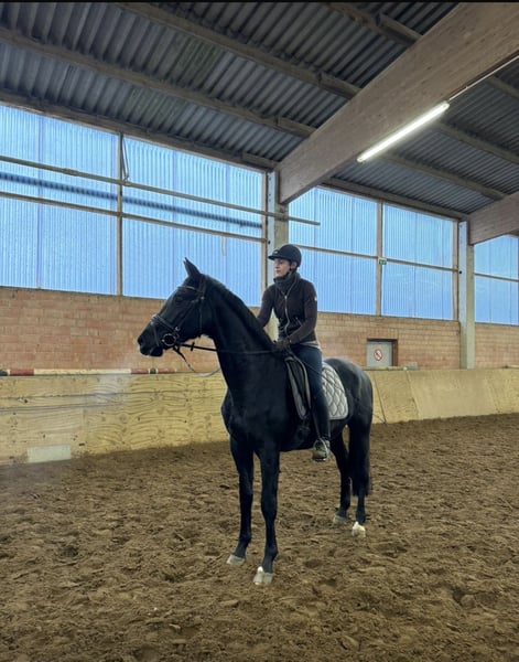 German Sport Horse mare for sale – Elegant Black Riding Horse For sale is a beautiful German sport horse mare, born in 2021. With an impressive height of 16.1 hh, she makes a striking impression and is perfectly suited for dressage. She impresses with her excellent movement quality, good temperament, and willingness to learn new things. Her black coat gives her a special presence and makes her a true eye-catcher in the dressage arena. This talented mare is ideal for ambitious riders seeking a reliable and promising partner for dressage competitions. If you are interested or require further information, please feel free to contact me. Get in touch for a personal impression and a test ride!