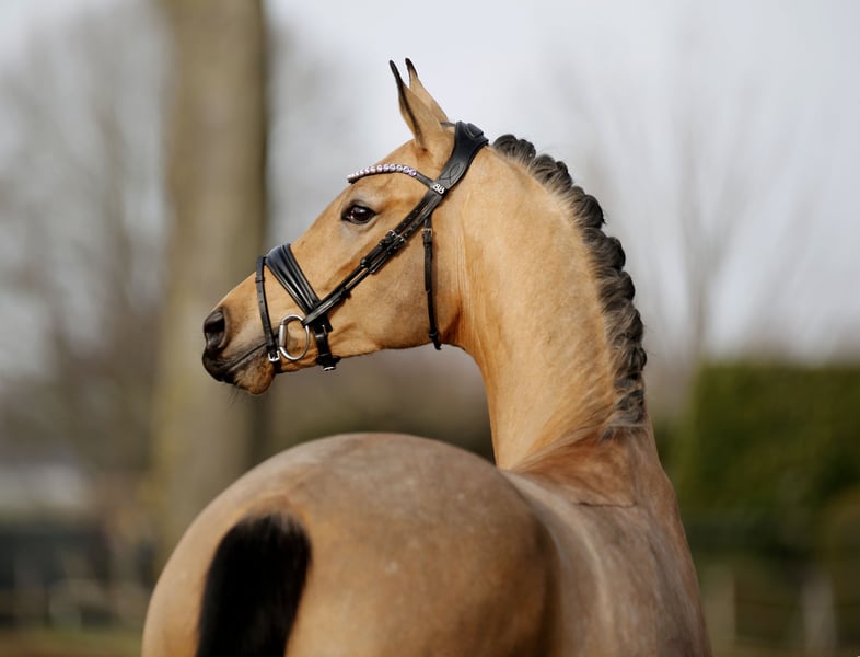 A rarity in every sense! An outstanding dressage prospect dressed in a striking golden coat with an impressive presence. Excellent riding comfort, combined with optimal development potential, superb basic quality, and a very good work ethic, make this young, still unspoiled young horse a highly interesting offering for sport and possibly future breeding. Easy to handle and already ridden by children and teenagers. Sold privately with a recent inspection (including back, neck, and poll).