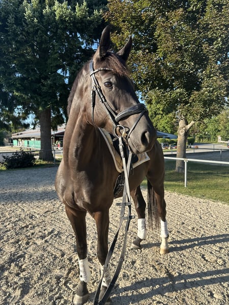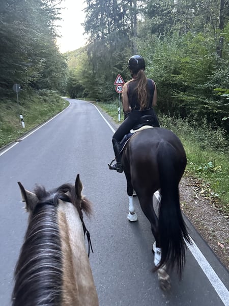 Tweety, a 5-year-old DSP mare, impresses with her sensitive and willing character. We acquired her as a foal, and she was gently backed at the age of four. She offers an untouched riding experience and shows motivation during training. She has grown over the past year and has been given some time to develop. She has not yet competed in a show and has only been out for a training session once. She is well-behaved in the field, jumps small fences, and is very affectionate. She is familiar with road traffic, tractors, dogs, and children. We are looking for someone who will give her the time and patience she needs, who will promote her athletically while providing variety. Due to her age and pedigree, she is not suitable for beginners. Further information and inquiries are gladly accepted via WhatsApp and/or phone.