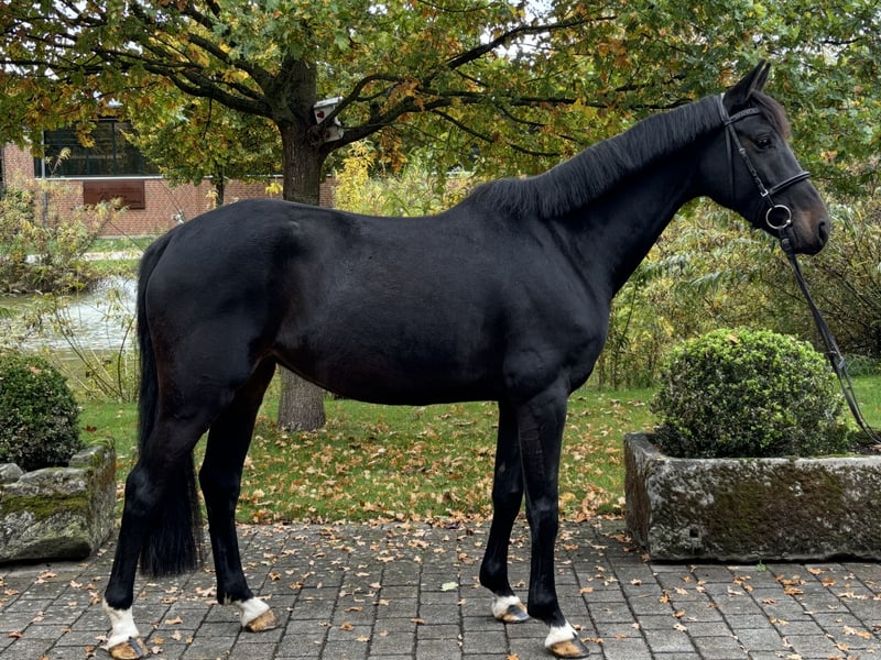 This charming 5-year-old mare, sired by Blockbuster and out of a Levistano mare, was born and raised here on our farm. She has been gently backed and given some time to develop on our surrounding pastures. In her first competition season this year, she immediately proved her talent, consistently placing well in show jumping classes at the A and A** levels with impressive rounds. She has excellent technique and a good approach to the jump. Not only under saddle but also in handling, she is straightforward and confident. Have we sparked your interest? Please contact us exclusively by phone; we are happy to answer any questions! Additionally, we have several other quality jumping horses available that might be suitable for you. Lars Schulze Wierling +49 171 4338810