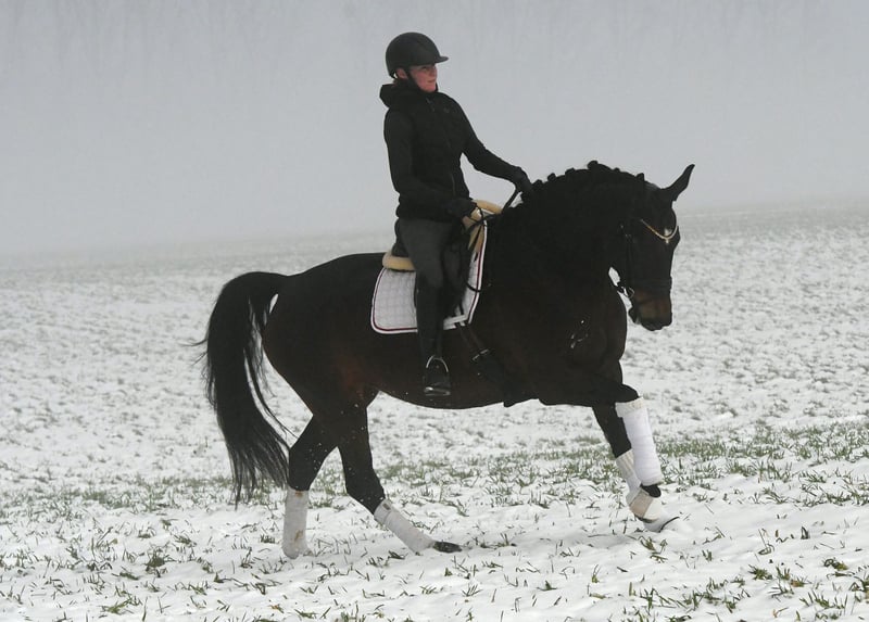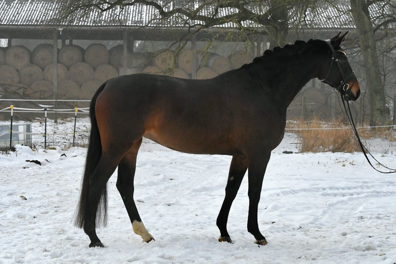Are calmness, bravery, and coolness very important to you? Then meet Marie! This six-year-old mare, sired by the internationally successful DSP Marc Cain and equipped with a substantial frame, was carefully and lovingly raised by her breeders, where she was the "girl for everything." Is she the right partner to give an anxious rider confidence? A trustworthy lead horse for trail riding or a solo ride through the woods? Dressage on the arena or in the indoor school? Cavaletti exercises or a lunging session? That’s Marie! An absolutely lovely mare, both in handling and under saddle. She is currently competing at a good A level and would certainly make a good impression at competitions (excellent walk, very easy to sit). Not spooky or skittish—just get on and feel comfortable! A recent X-ray certificate from September 2025 is available. She is the darling of her breeder’s stable! Compatible with other horses, she has been kept in a mare group. If you don’t fall in love with her, it’s your own fault! Please call us by phone, as we are often out with the horses.
