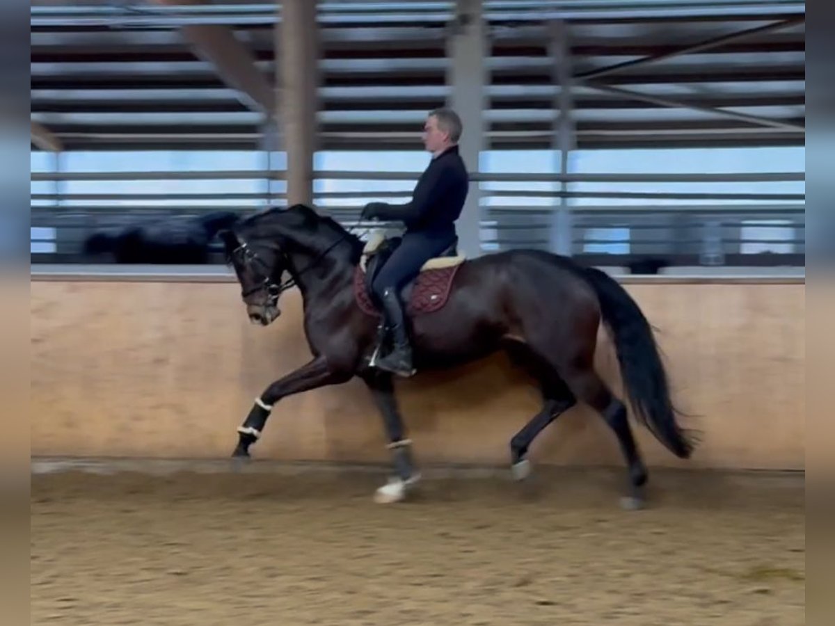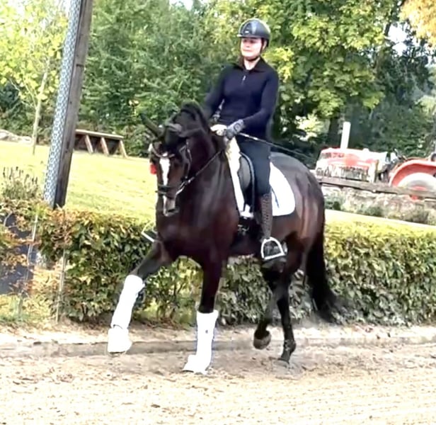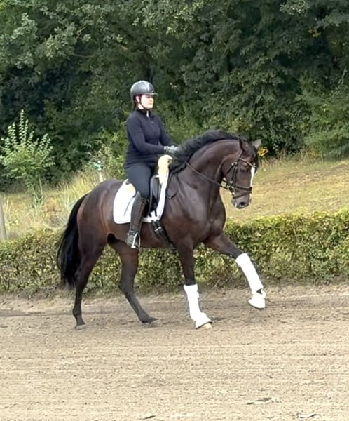 Jovina comes from our own breeding, has grown up with us, and has been carefully trained. At four years old, she was backed and is now, at five, already placed in A and L dressage competitions. She impresses with a very active, powerful hind leg, a lot of expression in her movement, and a high willingness to collect. Riding qualities: • easy to ride and comfortable to sit on • much go, always eager and willing to work • always uncomplicated and pleasant in the hand Character: friendly, motivated, and therefore ideal for ambitious riders looking for a talented young horse. Jovina combines willingness to perform, rideability, and beauty – a mare with great potential for advanced dressage sport. X-rays are available at four years old with no findings.