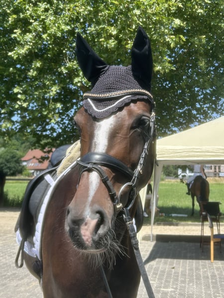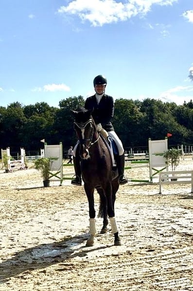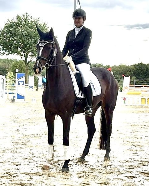 Jovina stammt aus eigener Zucht, ist bei uns aufgewachsen und wurde behutsam ausgebildet. Mit vier Jahren angeritten, zeigt sie sich nun fünfjährig bereits mehrfach in A-Dr. Drpf A und L-Dressurpferde platziert. Sie überzeugt durch ein sehr aktives, kraftvolles Hinterbein, viel Ausdruck in der Bewegung und einer hohen Versammlungsbereitschaft. Reiteigenschaften: • einfach zu reiten und angenehm zu sitzen • viel Go, stets fleißig und arbeitswillig • dabei immer unkompliziert und angenehm in der Hand Charakter: freundlich, motiviert und damit ideal für ambitionierte Reiter, die ein talentiertes Nachwuchspferd suchen. Jovina vereint Leistungsbereitschaft, Rittigkeit und Schönheit – eine Stute mit großem Potenzial für den gehobenen Dressursport Röntgenbilder liegen 4jährig ohne Befund vor. Weitere Auskunft oder Terminabsprachen zum Probereiten, gerne über WhatsApp. +491722318418
