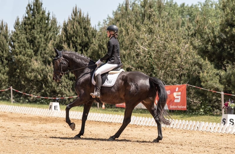 Zum Verkauf steht eine 2019 geborene Sportpferd Stute. Sie hat eine einseitige Kehlkopflähmung, wodurch ein Atemgeräusch - Kehlkopfpfeifen entsteht. Zudem hat sie ein leichtes Asthma. Beide Sachen machen Ihr wenig Probleme, Sie benötigt auch keine Medikamente. Sie wurde dieses Jahr bis zur Klasse L auf Turnier vorgestellt. Hier habe ich allerdings gemerkt, dass intensives Training zu viel für Sie ist. Ich suche für Sie einen Freizeitreiter, der gern ins Gelände geht und nebenbei ein Pferd für Dressurarbeit im A/L Freizeit-Bereich sucht. Sie is ein fein ausgebildetes Pferd welches Spaß macht. Zudem hat Sie einen tollen Charakter und ist trotz Ihres jungen Alters gelassen. Sie ist aktuell vorn Beschlagen und in einer gemischten Gruppe in der Sie tagsüber auf der Koppel steht und nachts in der Box. Mit anderen Pferden ist Sie einfach im Umgang. Mit etwas Überredung lässt Sie sich gut verladen und auch beim Schmied ist Sie brav. Sie hat einen für Sie angepassten Dressursattel welcher zusätzlich erworben werden kann.