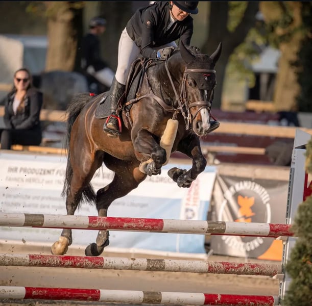 This five-year-old mare combines excellent genetics with sporting excellence: modernity, elegance, charm, and a natural elasticity that makes every jump an experience. Her springy take-off and positive attitude towards sport make her a fantastic partner in show jumping. Diadonna is motivated, with a clear performance mindset, and impresses with a true athlete’s mentality, making her a genuine sporthorse. Her interior and exterior are a perfect match—an impressive combination of quality, charm, and sporting class. Diadonna draws her talent from the best and most successful bloodlines, thanks to international top sires: Diarado x Equest Carnute. Her direct dam, "Tinette," was herself placed up to 1.50 m under Angelique Hoorn and won World Cup show jumping events. Her sire, "Diarado," was the Bundeschampion at five years old and has won international show jumping competitions up to 1.45 m. At just five years old, Diadonna has already demonstrated her sporting qualities impressively: despite her young age, she has amassed countless experience in courses and competitions. She has numerous placings up to 1.10 m and has jumped courses up to 1.20 m.