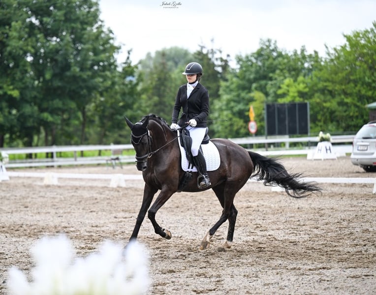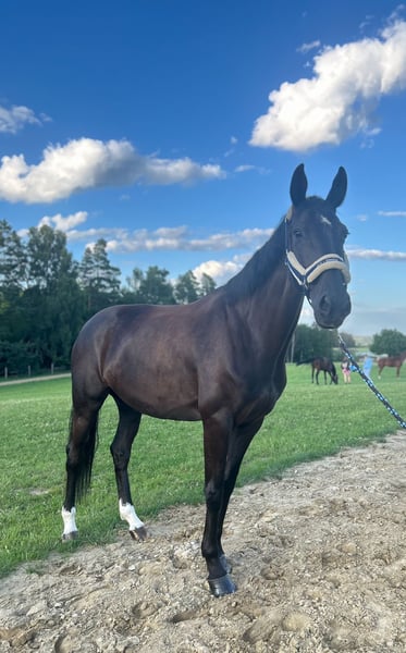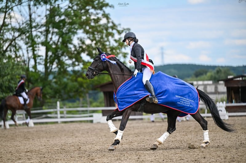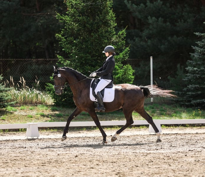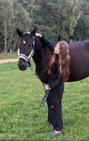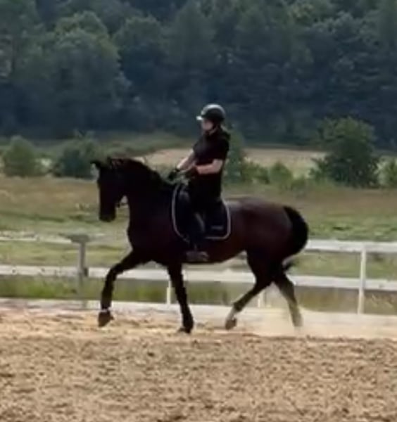 Mit schwerem Herzen verkaufe ich eine wundervolle 7-jährige Stute der Rasse Deutsches Sportpferd. Sie ist etwa 168–170 cm groß. Kotlina wurde mit wunderschöner Erscheinung und beeindruckendem Bewegungsablauf ausgestattet, was nicht zufällig ist – ihr Vater Santana ist ein Sohn des bekannten Sandro Hito, der große Erfolge auf Grand Prix-Niveau erzielt hat. Die Mutter stammt von dem ebenso majestätischen Rohdiamant ab. Sie ist zweifellos ein vielversprechendes Pferd mit großem Potenzial für die Zukunft. Sie hat bereits mehrfach an Turnieren teilgenommen – die Turnieratmosphäre beeindruckt sie nicht, sie zeigt sich stets hervorragend vorbereitet. Sie kann sich definitiv gut präsentieren :) Sie zeichnet sich durch elastische und großzügige Bewegungen aus, die auch von den Richtern hoch geschätzt werden. Sie ist äußerst reaktionsschnell auf alle Hilfen, unglaublich konzentriert auf den Reiter – sie gibt dem Training ihr Herzblut. Derzeit ist sie bis zur Klasse N ausgebildet, mit Potenzial nach oben. Kotlina ist unglaublich sensibel und aufmerksam. Sie benötigt eine ruhige und klare Führung – nicht für Anfänger geeignet. Ich suche einen erfahrenen Besitzer, der ihr weiteres Wachstum ermöglicht und vor allem einen verantwortungsvollen, respektvollen Platz bietet. Die Stute ist gesund, nicht verletzt. Sie steht in ständiger Betreuung eines Physiotherapeuten. Sie wird entsprechend ihrer Bedürfnisse gefüttert und mit Nahrungsergänzungsmitteln versorgt. Bei tierärztlichen Behandlungen oder Hufpflege zeigt sie keinerlei Schwierigkeiten. Sie ist regelmäßig entwurmt und geimpft. Das Reisen im Pferdeanhänger sowie das Aufladen sind für sie kein Problem. Sie ist gut erzogen – achtet auf den Menschen, respektiert den Raum. Sie kann sehr gut an der Longe laufen, reagiert auf akustische Kommandos und ist brav. Täglich von morgens bis abends steht sie auf ihrer Weide (nicht in einer Herde, da sie auf den Hinterbeinen steht, aber hatte nie Probleme mit anderen Pferden). Kotlina ist ein außergewöhnliches Pferd mit großem Herz und sportlichem Potential. Ich verkaufe nur an einen guten Platz mit Weiden und an eine erfahrene Person. Händler und Reitschulen danke ich. Die Stute befindet sich derzeit in der Woiwodschaft Pommern, Pępowo, Kartuskie. Der Preis beträgt 120.000 zł. Verkauf aus privaten Gründen. Bei Fragen stehe ich gern für eine private Kontaktaufnahme zur Verfügung. Bitte nur bei ernsthaftem Interesse per Nachricht (SMS, WhatsApp, Messenger). Telefonnummer: 501 524 585.
