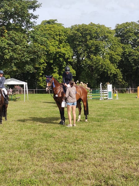 Montana überzeugt in der Arbeit durch Rittigkeit, Motivation und Engagement. Sie möchte ihrem Reiter immer gefallen, ist leicht in der Hand und macht Spaß. Sie bringt eine toll zu sitzende, elastische Galoppade und ein super Reitgefühl mit. Im Parcours verfügt sie über genügend Go, ohne heiß zu werden. Sie kennt zuverlässig ihren Job und ist am Sprung nicht guckig. Ich könnte sie mir auch sehr gut im Hunterbereich vorstellen. Durch ihre Grundqualität, gute Grundgangarten und Rittigkeit eignet sie sich als moderner, sportlicher Typ ebenfalls fürs Viereck. Auch als gehobenes Freizeitpferd einsetzbar. Im täglichen Umgang ist sie brav, zudem schmiede- und verladefromm. Sie ist regelmäßig geimpft, entwurmt und in osteopathischer Betreuung. Die Zähne wurden 2025 gemacht. Erfolge: • Springpferde A mit Noten bis 7,8 (2. Platz) • Stilspringen gewonnen mit 8,1 • Springpferde L gelaufen • Aufgrund Babypause in 2024 nicht und in 2025 wenig von mir vorgestellt, unverbraucht! Probereiten ist nach Absprache jederzeit möglich. Transport kann auf Wunsch übernommen werden.