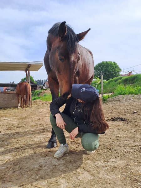 C'est avec un cœur lourd que nous avons décidé de donner notre Grace comme compagnon. En raison de circonstances personnelles, nous ne pouvons plus lui accorder l'attention nécessaire qu'elle mérite et désire. Nous souhaitons un nouveau foyer avec un box ouvert ou beaucoup d'espace pour se déplacer. Taille : environ 1,70 m Âge : née en 2017 Origine : Daily Deal x Royaldi En raison d'un constat au niveau du dos, elle n'est PAS montable. Après l'effort, elle présente toujours des irrégularités de rythme. Elle apprécie cependant les câlins, les promenades et la compagnie affectueuse. Dans un nouvel environnement, elle peut être un peu hésitante au début. Avec les enfants, elle est absolument câline ! Nous pouvons également envisager Grace comme jument de reproduction. Quand Grace fait confiance à son humain, elle est prête à tout affronter avec lui. Un bon foyer avant tout !