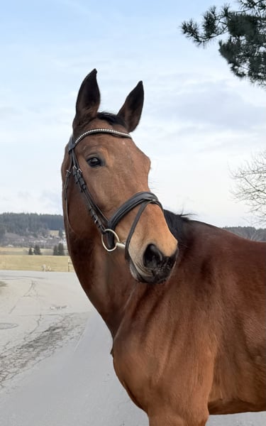 Barbarella ist eine sehr hübsche Stute mit hervorragender Abstammung nach Balotelli. Das 2018 geborene deutsche Sportpferd ist ca. 173 cm groß und gut bemuskelt. Die Stute wurde sowohl im Springen als auch in der Dressur ausgebildet und verfügt über eine sehr gute Einstellung. Besonders beim Springen zeigt dieses Pferd ihre Qualität. Barbarella wird sowohl Freizeit- als auch Turnierreiter eine Freude machen. Aktuelle Röntgen (ohne Befund) liegen vor. Weitere Infos und Videos gerne per WhatsApp oder telefonisch unter: 00436603632373 Standort: Pelmberg 15/ OÖ Besichtigung und Probereiten gerne nach Terminvereinbarung! Der Transport des Pferdes kann gerne übernommen werden