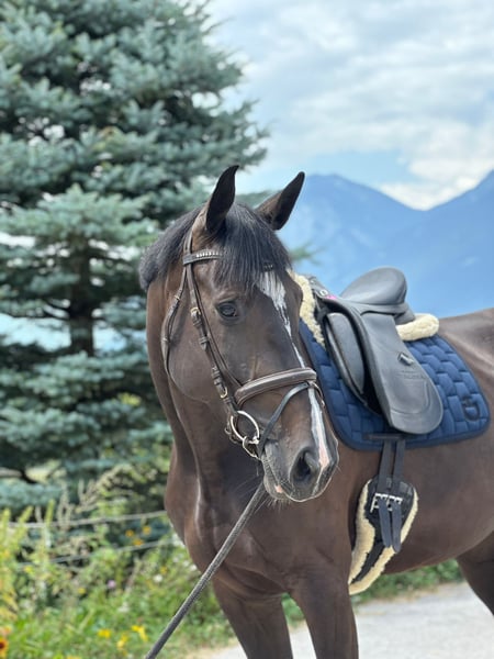 For family reasons, we are offering our personable and talented 7-year-old mare by Diatendro out of Clearline Z. After her foaling (a premium breeding mare with good scores and excellent conformation), she only came under saddle at nearly 6 years of age. She was gently introduced to basic gaits and has since competed at shows up to medium level. Currently, she is being trained to jump single fences up to 135 cm. She also has potential in dressage, but her main focus has been on show jumping. She is characterized by her high jumping ability, a clear head, and strong willingness to perform. Dia was directly purchased from the breeder and has never had negative experiences with people, making her very friendly and affectionate. She is well-behaved in the terrain, whether alone or in a group. Not an amateur horse, she requires an experienced rider with a steady hand. She has never been lame or ill, is load and farrier friendly (barefoot with very good hoof quality!), and has been regularly vaccinated and veterinary checked. Price negotiable for a good placement. Currently located at Hofgut Albführen, available from mid-January (earlier upon request). A-6071 Aldrans