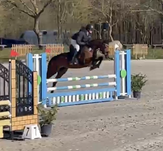 For sale is a high-quality, exceptionally brave 2017-born sport mare with talent and potential for show jumping. The mare is trained up to novice level in dressage and has competition experience. She is very well-behaved and uncomplicated during shows. Her special talent lies in jumping: equipped with plenty of scope and caution, she has already competed successfully in A-level show jumping classes and has placed. Pedigree: Macho B (by Monte Bellini x Landrebell) out of Casskeni II x Levisto. Her impeccable character is particularly noteworthy: in daily handling, she is extraordinarily well-mannered, straightforward, and completely reliable – a true dependable partner. Under saddle, she is sensitive in the mouth, easy to ride, and eager to please. She does not buck or bolt. For her further development, she is looking for a confident rider who can provide her with calmness and security in the arena. With the right rider, she can develop into a motivated and honest partner in show jumping. She is suitable for ambitious amateurs as well as competitive riders seeking a horse with quality, rideability, and potential. A recent dental procedure was fully completed and has no impact on her sporting future. Only to be placed in supportive and suitable hands.