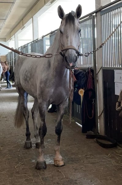 Na sprzedaż jest ta kochana 9-letnia klacz. B-Two to około 1,70 m wysoka klacz DSP i ma serce ze złota. Na zawodach była prezentowana z sukcesem w skokach do poziomu L. Daje jeźdźcowi dużo pewności siebie i zawsze chce się podobać. Podczas jazdy w terenie jest niezawodna, nie działa impulsywnie i zawsze zwraca uwagę na swojego jeźdźca. Niezależnie od tego, czy jeździ sama, czy w grupie, B-Two zawsze jest towarzyska. Również z dziećmi jest bardzo grzeczna i ostrożna, dlatego wyobrażam sobie ją jako konia dla dzieci lub do terapii. Jest podkuwana i spokojna w transporcie, zna ruch drogowy, pojazdy rolnicze i codzienne życie w stajni. W stadzie jest niskiego rangu i unika konfliktów. U mnie spędza dni na pastwisku, a na noc wraca do swojej stajni. Z powodu stanu klinicznego oddaję ją jako częściowo jezdnego towarzysza w najlepsze ręce. Miejsce przed ceną!!! W razie dalszych informacji chętnie odpowiem (proszę o kontakt telefoniczny lub przez WhatsApp) 0176-45705757.