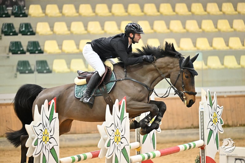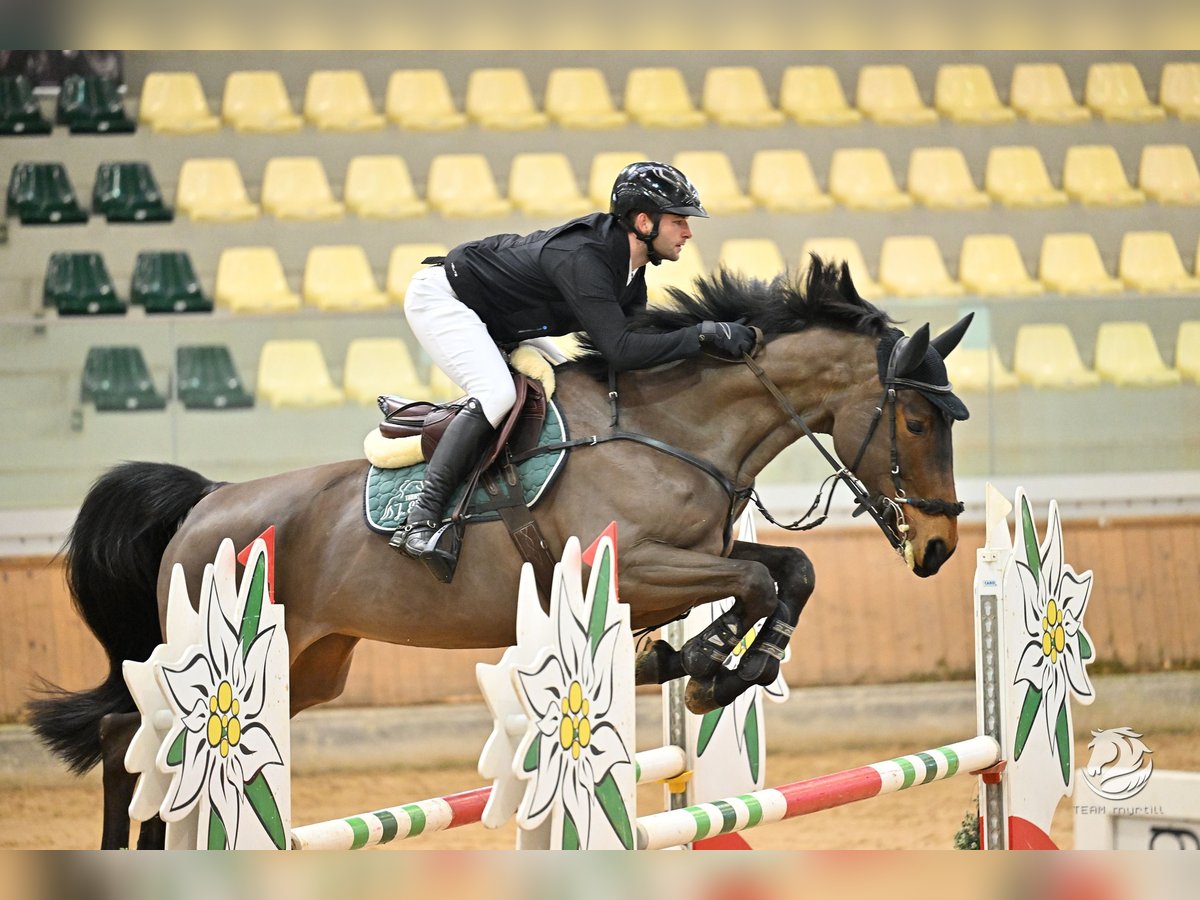 For sale is an exceptionally well-behaved and talented 9-year-old mare, sired by Ogano and Cantando. At our stable, she goes by the name Ocala and impresses not only with her sporting qualities but, above all, with her outstanding temperament. Ocala is an elegant dark bay mare with a beautiful conformation and a height of approximately 1.73 m (17.0 hh), making her ideally suited for both amateur and professional riders. She excels over fences with her excellent manners and natural talent. Always motivated, eager to learn, and with a lively, energetic nature, she brings plenty of enthusiasm and joy to her work. Her most remarkable trait is her exceptionally calm and brave demeanor: Ocala is an absolute reliable partner. While she can occasionally be a bit nervous in certain situations, she remains consistently well-behaved and predictable. For this reason, she is not suitable for beginners but is better suited for riders with some experience. In daily handling, she is exemplary: She is calm in the outdoor and indoor arenas, and goes willingly into the lunging circle, paddock, and turnout. Additionally, Ocala is farrier- and loading-friendly. She has already demonstrated her sporting potential successfully: She has competed up to 1.30 m at shows and has placed at 1.25 m. From early on, she has shown above-average quality, ability, and a positive attitude toward jumping. We are convinced that, with the right rider and further training, Ocala has the potential to progress into the higher levels of sport. She is looking for a partner who will form a true team with her and continue to support her development. An honest, performance-oriented, and exceptionally brave sport horse with great potential.