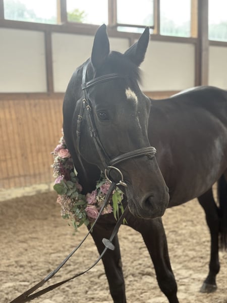 Zum Verkauf steht eine bildschöne, 9 jährige Stute von Diarado aus bewährtem Stamm. Sie wurde bislang als Zuchtstute eingesetzt und erst Anfang dieses Jahres schonend angeritten. Trotz der kurzen Zeit unter dem Sattel zeigt sie sich besonders brav und unkompliziert im Umgang wie unter dem Reiter. Sie ist bereits fehlerfrei in A-Springen außer Konkurrenz gestartet und überzeugt durch ihr Vermögen, ihre gute Arbeitseinstellung und ihren ausgeglichenen Charakter. Auch im Gelände zeigt sie sich absolut sicher und unerschrocken. Dank ihres Wesens und ihrer Veranlagung eignet sie sich sowohl als vielseitiges Freizeitpferd, als auch für ambitionierte Reiter im Spring- und Vielseitigkeitssport, die ein Pferd mit Zukunftsperspektive suchen. Bei ernsthaftem Interesse freuen wir uns über eine WhatsApp Nachricht!
