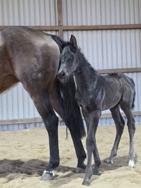 Schickes Stutfohlen von Las Vegas aus dem Stamm des Olympiapferdes Escapado (Carl Hester). Geboren am 01.03.2026 Überzeugt unsere Lady Vegas GO mit allerbester Bewegung.