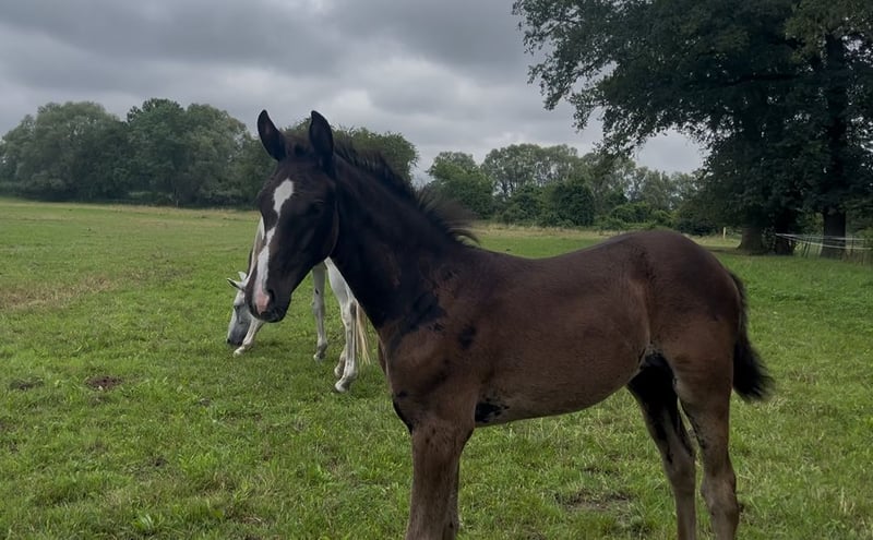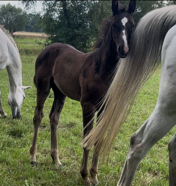 Deutsches Sportpferd - direkt vom Züchter ! Typvolles Stutfohlen aus edeln Mutterstamm. Geb.: Mai 2025 Farbe: Rappe - bleibt dunkel ! Vater : Great Gatsby ( Global Player/Astrix/Lord Loxley) Muttervater: Quaterman / Kaiserwind / Paradisvogel Aus diesem Mutterstamm sind Zahlreiche Staatsprämien Stuten und schon gekörte Hengste entstanden. Durch den Kaiserwind fallen die Nachkommen auch sehr im Springsport auf. Ein Pferd was beides kann. Bei ernsthafter Interesse gerne telefonisch melden 0173 7686997 Standort : 39606 Osterburg !