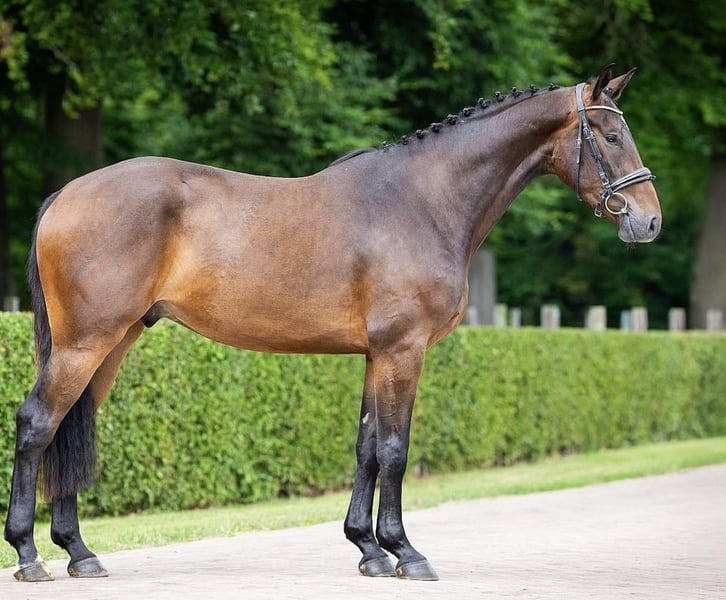 Zum Verkauf steht ein 3,5 jähriger dunkelbrauner Wallach von Quando van helle x Vulcain du Saint homme x ogano Er ist seit ein paar Wochen unter dem Sattel, ist dabei mit angenehmen Go ausgestattet und läuft super einfach am Zügel. Im Umgang ist er ein ganz liebe Seele und liebt Putzeinheiten. Er kennt führanlage, volle Reithallen usw. Beim freispringen zeigt er enormes Talent, extrem vorsichtig, Potenzial bis S. Unter dem Reiter geht er cavaletti /Stangen, sowie kleine Kreuze. Röntgenbilder liegen ohne Befund vor.