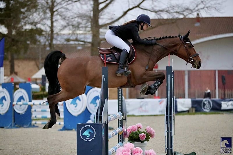 Belle génétique : GRECO SITTE - FEI 145 (par BUTTON SITTE - FEI 160) X ULTRA DE CANTRAINE (par CHRIS DU CHESNAY) Très beau model, ayant tourné jusqu'en 110. Potentiel Amat Elite 125/130 min. À finir de former car manque d’expérience. Jument qui comprend vite et veux bien faire. Bon coup de saut à exploiter. Ayant déjà pratiqué le concours complet en Belgique. Peut vivre en extérieur. Cause études Niveau min requis : Expérience en compétition Amateur Informations, videos, photos sur WhatsApp au 0781175337