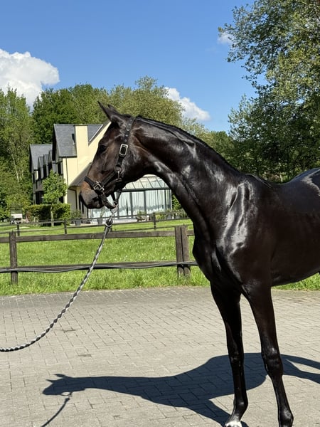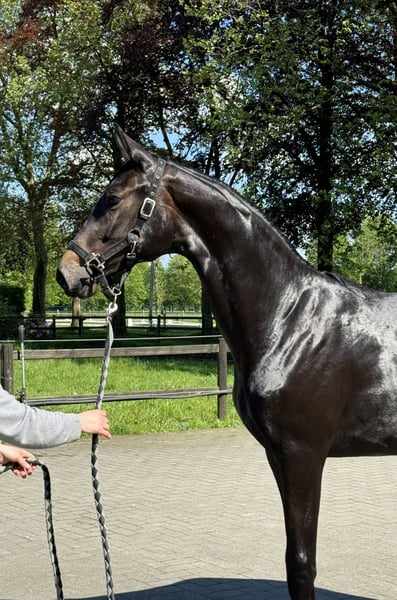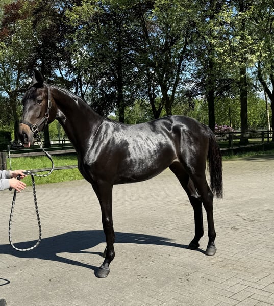 Direct from the breeder, a very sweet mare with excellent qualities. She is very well-behaved and easy to handle. Just a little more time before she can be ridden. We have three full sisters, and all three are truly top-class.