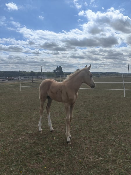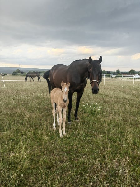 Sportpferd in Sonderlackierung. Hier gibt es nicht nur eine wunderschöne Palominofarbe, sondern auch beste Genetik und sportliche Erfolge. Elsa präsentiert sich als sehr korrektes und mutiges Fohlen mit viel Kraft in der Hinterhand und einem harmonischen Exterieur. Sie hat viel Energie, ist aber sehr umgänglich. Ich sehe sie als ideales Sportpferd für einen ambitionierten und versierten leichten Reiter/Reiterin in der Vielseitigkeit oder auch im Springsport. Endmaß sollte bei 1,65/1,66m liegen. Platz vor Preis, sportliche Förderung steht im Vordergrund. Bei entsprechenden Referenzen bin ich bereit sehr weit entgegenzukommen. In liebevoller Aufzucht mit hochwertigem Futter. Kann dort auch verbleiben, falls Aufzuchtplatz benötigt. Elsa sollte mein neues Sportpferd werden. Einziger Abgabegrund ist, dass wir etwas unerwartet noch ein weiteres Fohlen (Vanilla Ice de Tamise / Mytens xx) bekommen haben und nicht alle bleiben können. ------------------------------------------------------------------------------------------------------------------ Bereit für einen Exkurs in ein Leistungspedigree? Der Vater Vanilla Ice de Tamise, ein goldgelber Palomino, ist ein Junghengst und Neuzugang im berühmten belgische Gestüt Stal de Muze. Er wurde letzten Winter schonend angeritten, hat die Belgian Stallion Competition (Springen) absolviert und wird nun für eine Karriere als Vielseitigkeitspferd vorbereitet. Vanilla Ice ist charakterlich einwandfrei und extrem rittig. In seinem Pedigree finden sich nicht nur Stars aus dem S-Springparcours wie Kasanova de la Pomme, Bamako de Muze und Darco, sowie der selbst bis 1,40m erfolgreiche Falbe Cream on Top, sondern auch mütterlicherseits echte Highlights. Mutter Lagune van't Verahof lieferte neben Popeye de Tamise (1,50m) auch bereits Olympic de Muze (4* Karin Donckers) und Ragdoll de Tamise (3* Wouter de Cleene). Großmutter Southern Queen xx ist vor allem bekannt für Ihre Nachkommen Fletcha Van't Verahof (4* Legende von Karin Donckers), Heras van't Verahof (1,60m) und Leipheimer van't Verahof (4*, gekört und Olympiapferd von Karin Donckers). Genetisch und auch im echten Leben ein Hengst der begeistert. Die Mutter von Elsa ist im Hannoveraner Hauptstutbuch eingetragen inkl. Freispringen. Sie verfügt über raumgreifende Grundgangarten, fantastische Rittigkeit und eine sehr saubere Springtechnik (Technik 8,0). Durch einen Anhängerunfall mit Teilabriss des Nackenbandes ist sie leider nicht im Sport gelaufen. Muttervater Viscount gilt als sicherer Doppelvererber. Er ist väterlicherseits ein Halbbruder zu Nadine Marzahls viel zu früh verstorbener Valentine. Er selbst hat Nachkommen in allen Disziplinen bis Klasse S. In der VS u.a. Viscount Victor (5* Tim Price), Venezuela (4* Emily Grace), Very Special (4* Brandon Schäfer-Gehrdau), Vidalgo (3* Kevin McNab), Viscina (3* Felix Vogg), Valetta (3* Jörn Warner), und viele mehr. Die Großmutter war nach einem späten Einstieg selbst im Sport unterwegs (mangels passendem Reiter nur bis 1,30m). Sie ist eine der letzten noch lebenden und in Deutschland verbliebenen direkten Mytens xx Stuten und erfreut sich mit 23 bester Gesundheit. Mytens xx gilt als eine Legende der Vollblüter in der Warmblutzucht. Er selbst ist ein Sohn eines Weltrekordpferdes und wurde als Jährling für 995.000 USD nach England verkauft, gewann dort Rennen und wechselte dann in den Springsport, wo er bis in die schwere Klasse erfolgreich war. Mytens lieferte Sportpferde für alle Disziplinen, u.a. die Derby-Sieger Watermill Fourth xx und Watermill Seven xx, viele S-Springpferde wie Hamar (gek. USA), Haydn (gek. SWE), Helibantos, Hytens (gek.), Mullins (Tjark Nagel), Joint Venture (JAP) und viele mehr, sowie in der Vielseitigkeit My Win (gek., 4* Lazlo Egyed HUN), Mighty Magic (gek., 3* Andreas Dibowski), Irco B/Igeret (gek. 3* Bor Schaller HUN) und weitere. Hier findet sich außerdem der Doppelvererber Gambler's Cup xx eingesetzt auf dem ostpreußischen Stutenstamm (O184 A Hoffmann Motitten). Der Stamm ist ein kleines Juwel, neben der Hannoveraner Stute des Jahres 2009 brachte er zudem einige gekörte Hengste, sowie etliche sporterfolgreiche Pferde. Dazu zählen u.a. die S-Springpferde Lantinus Z (Olympiade Springen), Winnie H (Vollschwester zu Wilthy H), Sissi, Ciky Caloa, Salamander, etc. Sowie die S-Dressurpferde Primadonna, Wilwaukee, Al Pacino, etc. Eine Kombination aus dem eisenharten Blut der Ostpreußen, mit der Vielseitigkeit der der alten Hannoveranerlinien und eine guten Portion sportgeprüften Vollblütern.