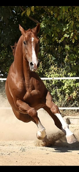 CDE Chestnut son of Santano, very well-trained with an excellent temperament.